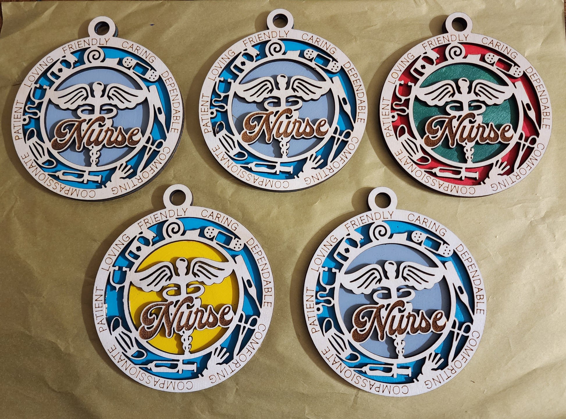 Multi layered nurse ornaments.